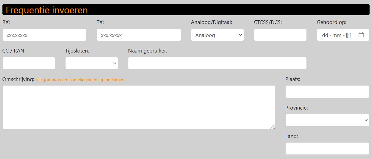 blokje vrijmaken voor opmerkingen bij invoeren frequenties database