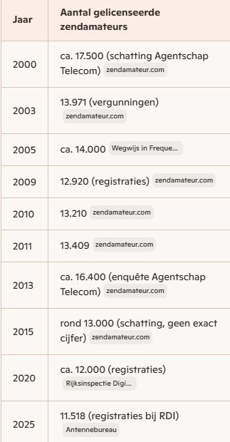 Ondanks dat het aantal inwoners in Nederland afgelopen 25 jaar enorm toegenomen is, worden het aantal zendamateurs steeds minder.