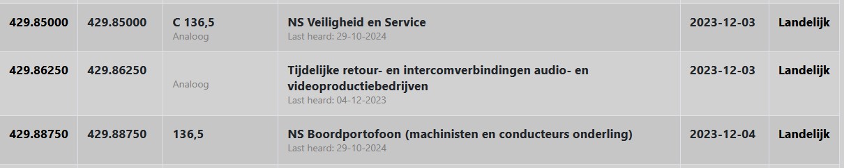 Klopt, MikeXenu daarom had ik onder Groningen ook die frequenties gezet. Als je plaatsnaam landelijk invult, dan krijg je wel de NS er bij. Zo heb je in Groningen ook Arriva etc.