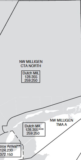 Zou je denken, maar vertrekkende vliegtuigen vanaf Eindhoven worden doorverwezen naar 128.350 en die zie ik niet in je overzicht Johan.