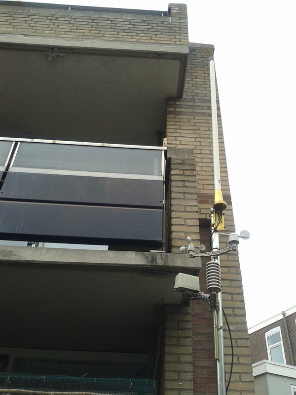 Onderstaand een aantal foto's van hoe mijn Procom op een mastje was gemonteerd tegen het balkon hek aan.